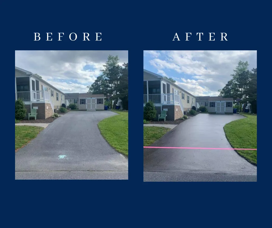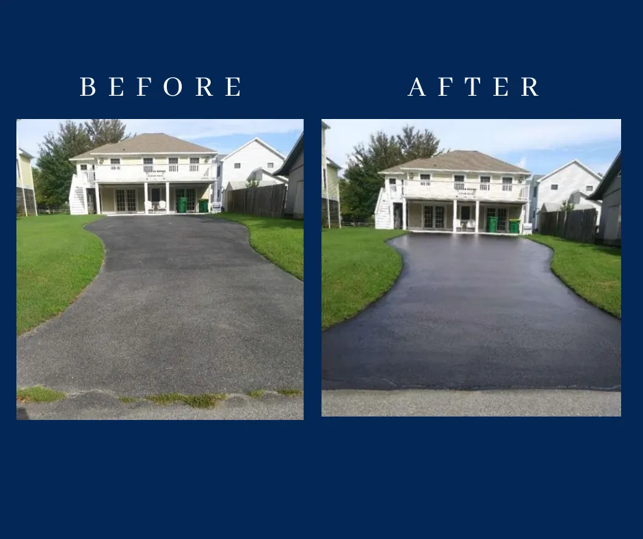 Revitalize your driveway with seal coating by Hughes & Sons. We fill the cracks and make your asphalt smooth and attractive again!